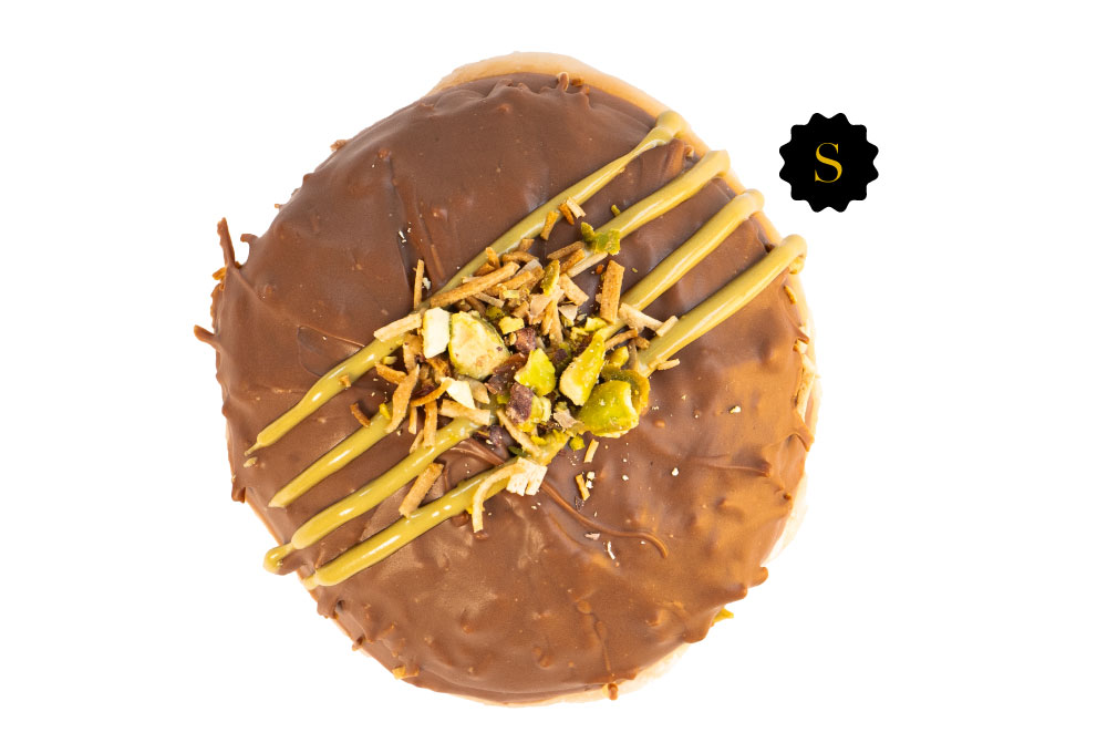 Rellena de crema de pistacho y doblemente bañada con cobertura de