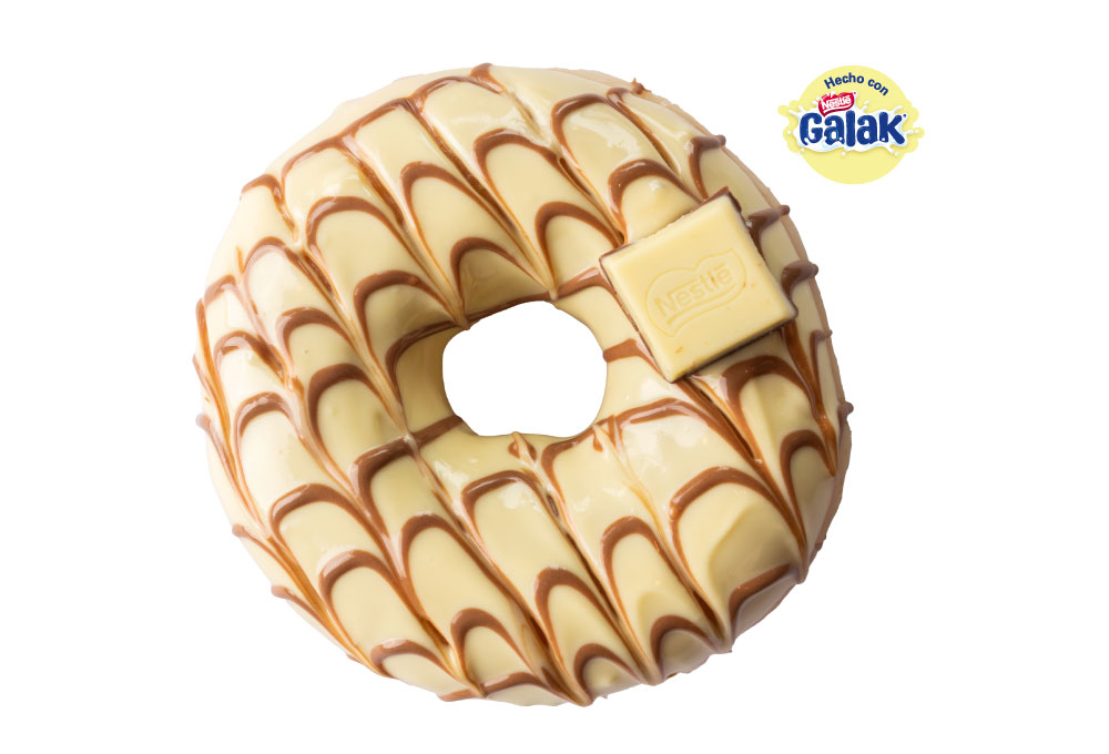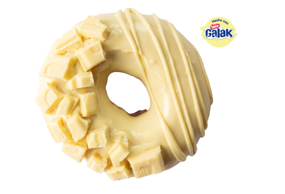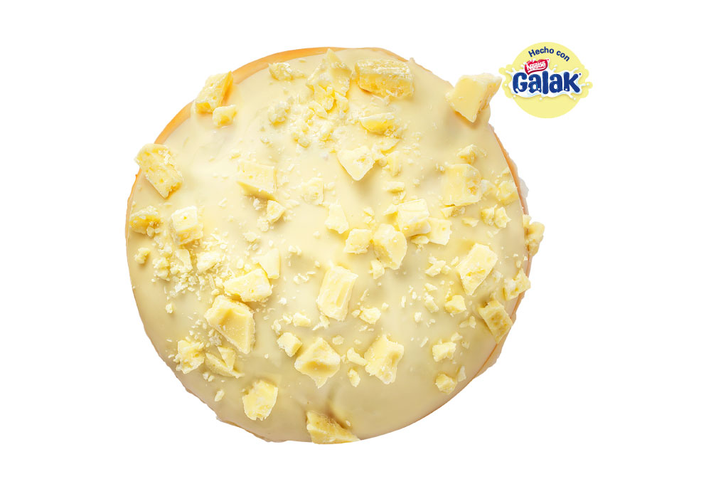 Rellena de leche condensada y cubierta de chocolate blanco con trozos de Galak®