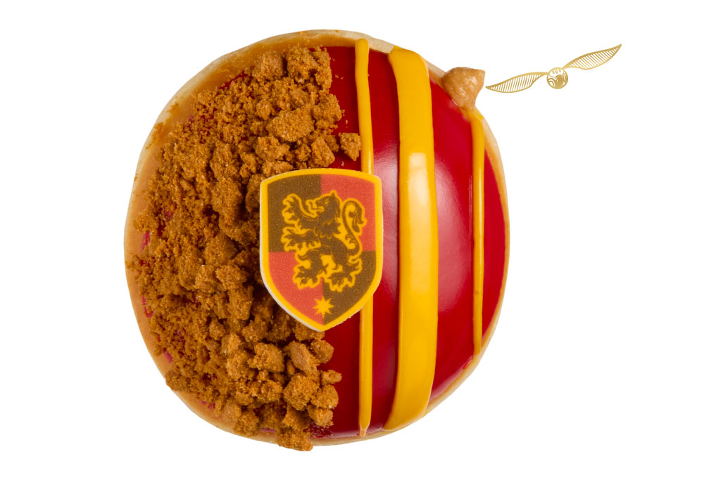 Shell rellena de Krema Galleta, cubierta de los colores y el escudo de Gryffindor® y decorada con galletas.