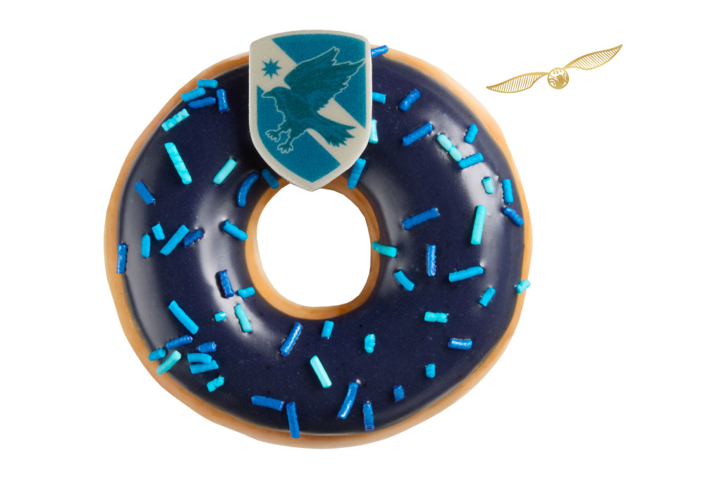 Nuestra Glaseada Original bañada con icing azul sabor a arándanos y decorada con chispas y escudo de Ravenclaw®.